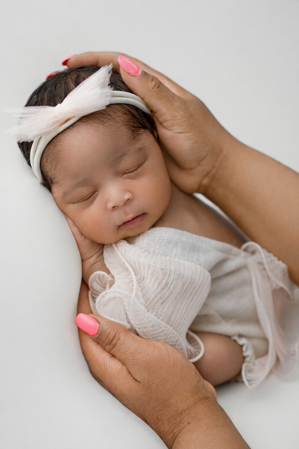 Delicate details — tiny fingers resting over her heart, curled toes held gently in loving hands, and the softest expressions — tell the story of just how small and perfect these early moments are. Subtle floral headbands and airy fabrics added a refined, organic touch without taking away from Kadence’s natural beauty.