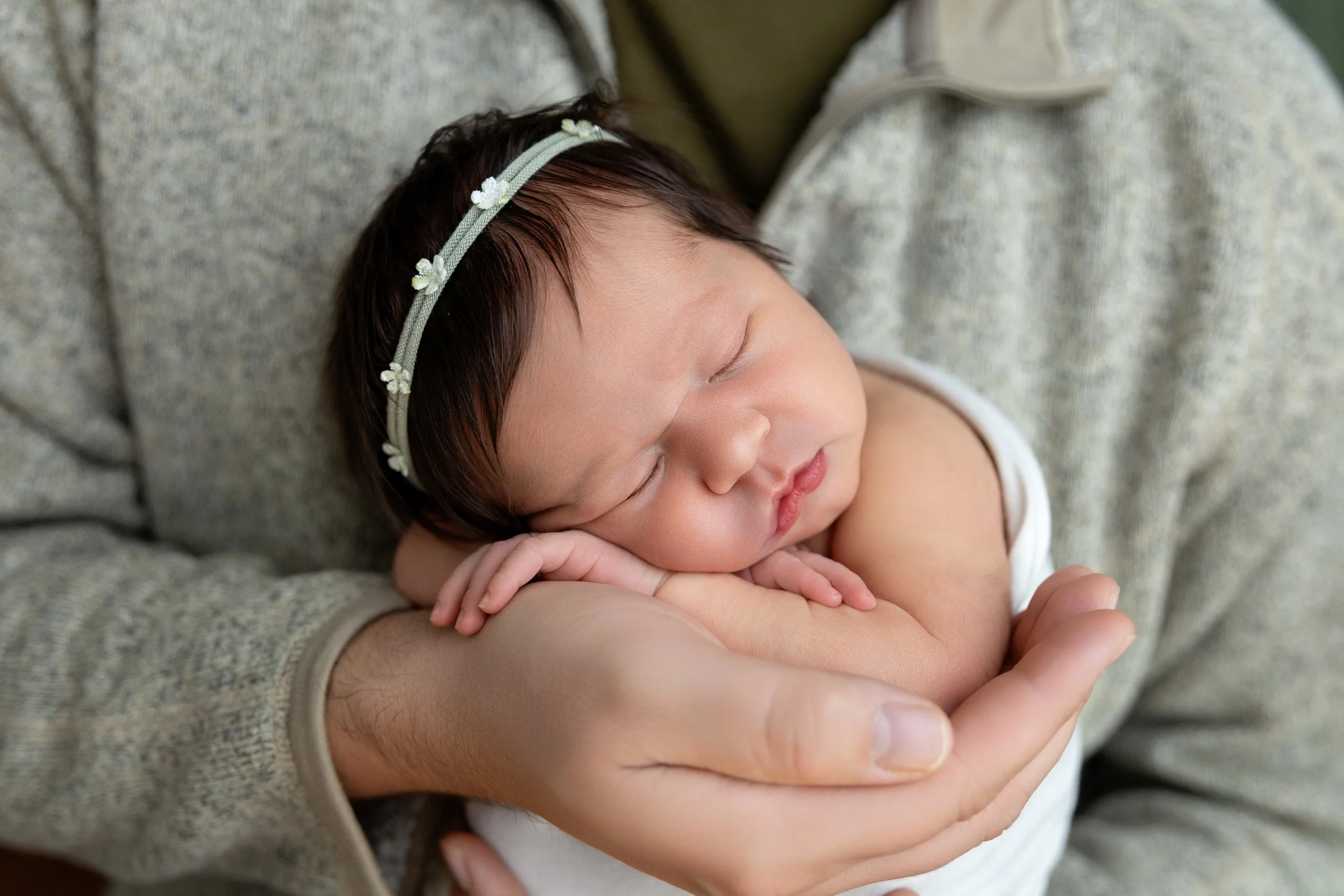 A quiet smile. A gentle nose-to-nose moment. A tiny baby resting in her father’s hands.